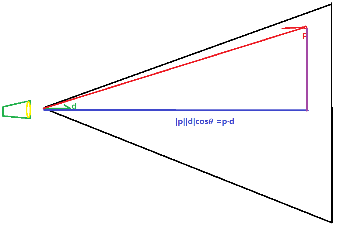 -> d는 단위벡터이므로 p cos𝜽는 p의 d성분이 된다.