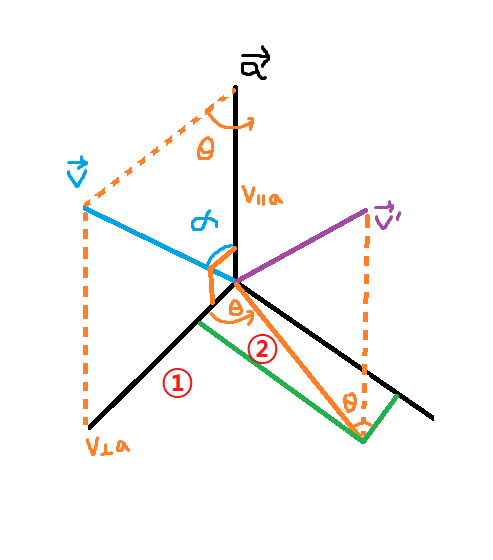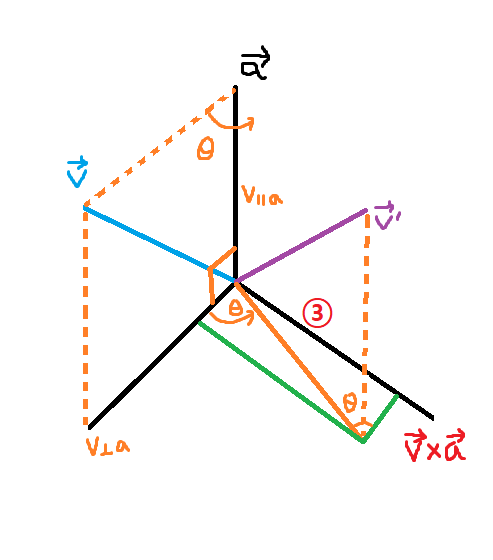 v' = (v · a)a + (v - (v · a)a)cos𝜽 + (a x v)sinα