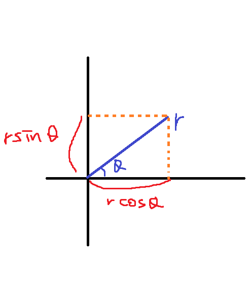이 좌표는 (r cos𝜽 , r sin𝜽)로 이루어져 있다.