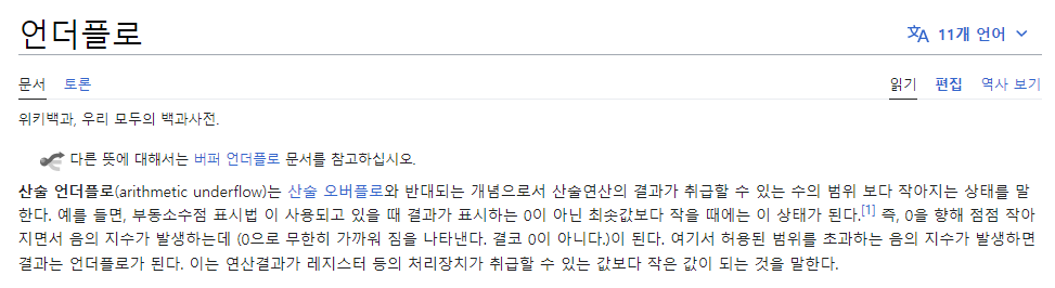 - 그래서 unsigned의 경우 음수가 되면 underflow가 발생하므로 음수로 내려가지 않도록 예외처리를 해주어야 한다.