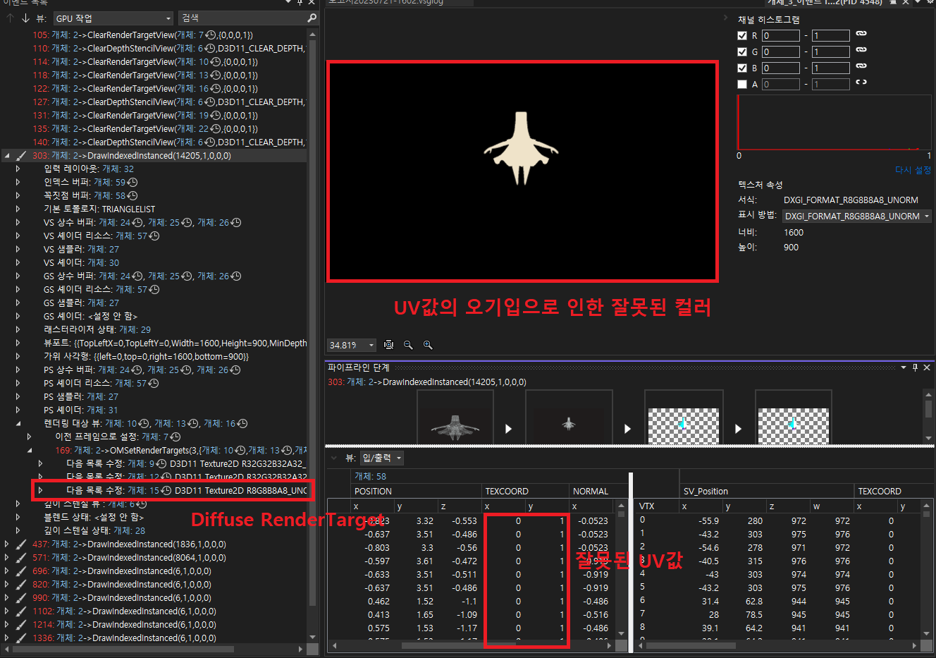 - 이런 문제가 발생한 이유는 uv를 가져오는 코드가 잘못됐기 때문이었다.