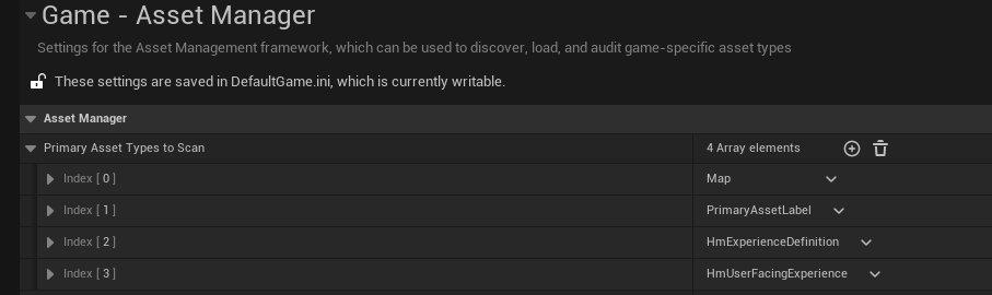 Experience는 Primary Data Asset를 상속 받아 만들었으며, 이 데이터 타입은 AssetManager를 통해서 쉽게 로드가 가능합니다.