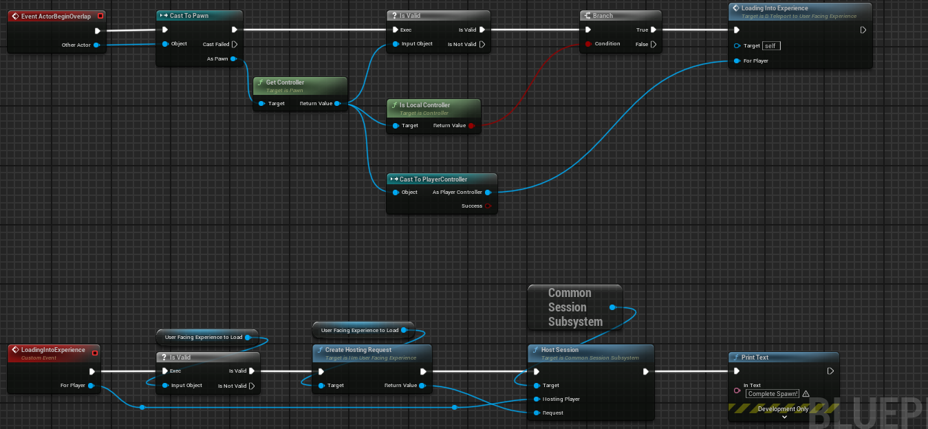 Lyra에서 각 맵의 단위는 Experience라는 단위로 구성되어 있으며, 맵 간 이동은 오브젝트의 충돌(Overlap)을 통해 이루어집니다.