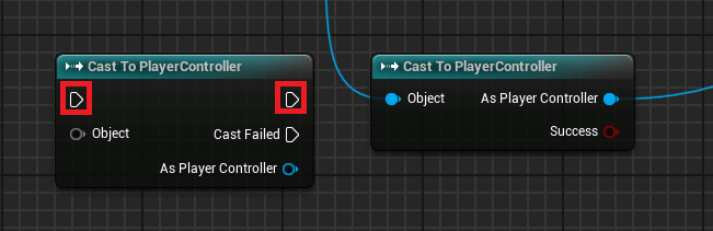 Cast To PlayerController 노드가 그냥 생성 시 Exec 핀이 있는 채로 생성되게 되는데,