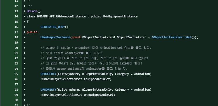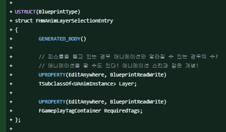 그래서 WeaponInstance는 이런 니즈를 충족하기 위해 AnimLayerSelectionSet이라는 구조체를 들고 있습니다.