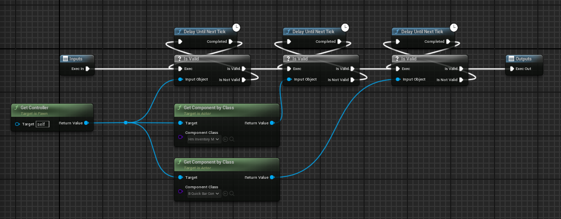 - IsValid의 결과가 Is Not Valid라면, Delay Until Next Tick을 통해 다음 Tick에서 실행하는 것입니다.