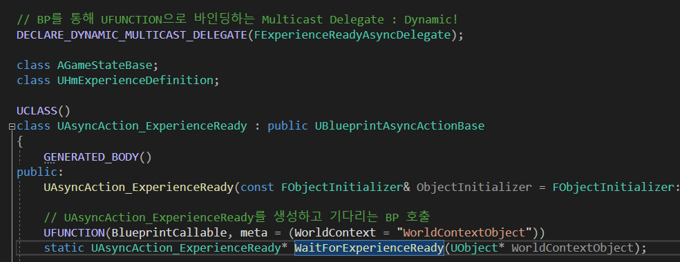 - 로직이 완료되면 FExperienceReadyAsyncDelegate를 통해 완료 보고를 받게 됩니다.