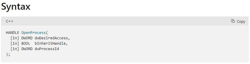 HANDLE hProcess = OpenProcess(PROCESS_VM_READ,