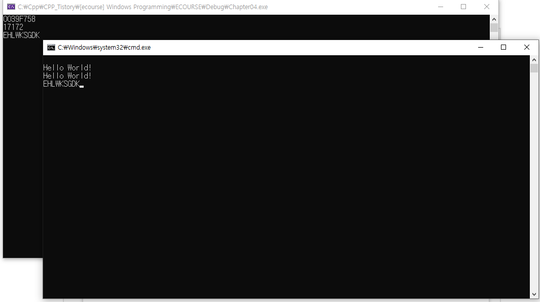 HWND hwnd = FindWindow(0, L"C:\\Cpp\\CPP_Tistory\\[ecourse] Windows Programming\\ECOURSE\\Debug\\Chapter04.exe");