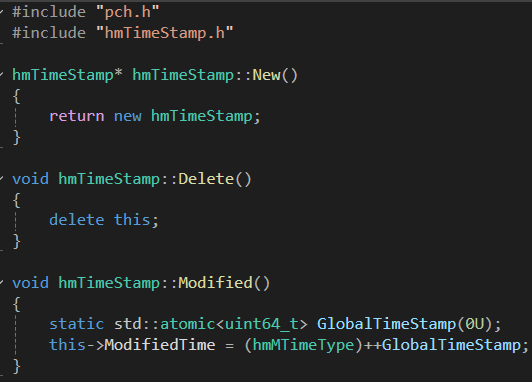 Modified라는 함수 내에서 static으로 atomic<uint64> 형태의 카운팅 변수를 들고 있고, 객체가 업데이트되면 이 정수값을 증가시킨후 객체의 내부 MTime 변수에 대입한다.