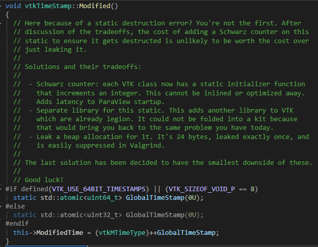 // - Schwarz 카운터: VTK의 각 클래스마다 정적 초기화 함수(static initializer)가 필요해지며,