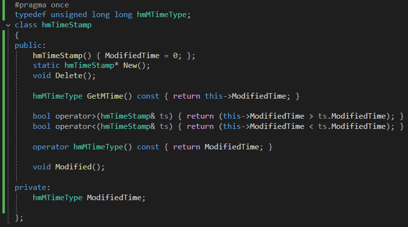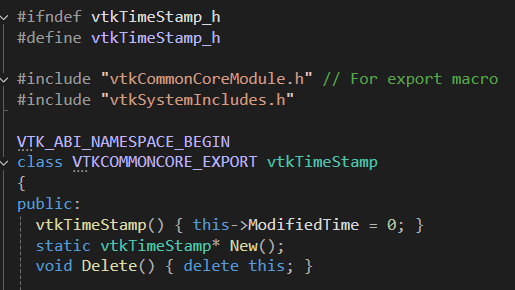 vtk는 수많은 상속구조로 되어 있는데 이 vtkTimeStamp는 아무 것도 상속받지 않은 단독 클래스다.