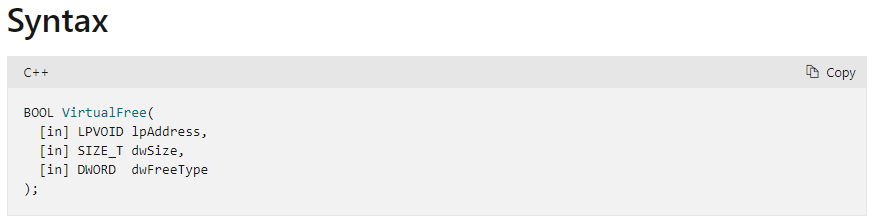 dwSize는 그 주소에서 확정한 일부를 해제하기 위한 사이즈 (3번째 인자 MEM_DECOMMIT)