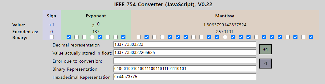 float형 변수값 1337.7331가 메모리에 매핑될 때