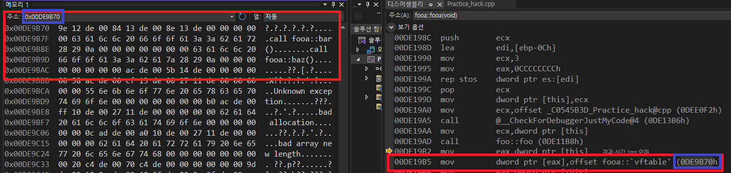 이 코드를 통해 VF테이블의 정적 주소 VFADDR을 가져오게 되며, 인스턴스의 첫 멤버에 위치시킴