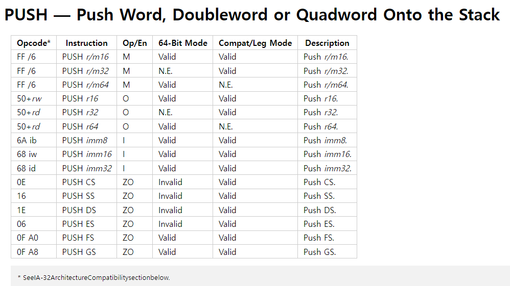 - push 명령어의 경우 피연산자가 1바이트면 바이트코드로 6A로 표시되는데 2바이트 이상이면 68