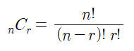 조합은 n C r로 표현하며 개수를 구하는 식은 아래와 같다.
